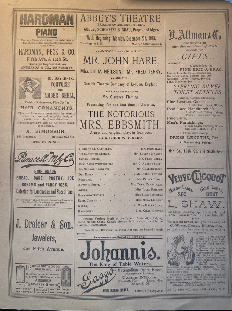 Abbey's Theatre, NY. "The Notorious Mrs. Ebbsmith." Dec. 23, 1895.