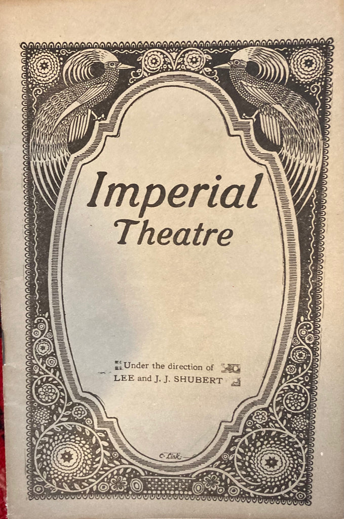 Imperial Theatre, NY. "Mary Jane." Feb. 4, 1924. 8vo. 24pp., prof illust w/ ads inc restaurants. Color illust wraps, generally Good.