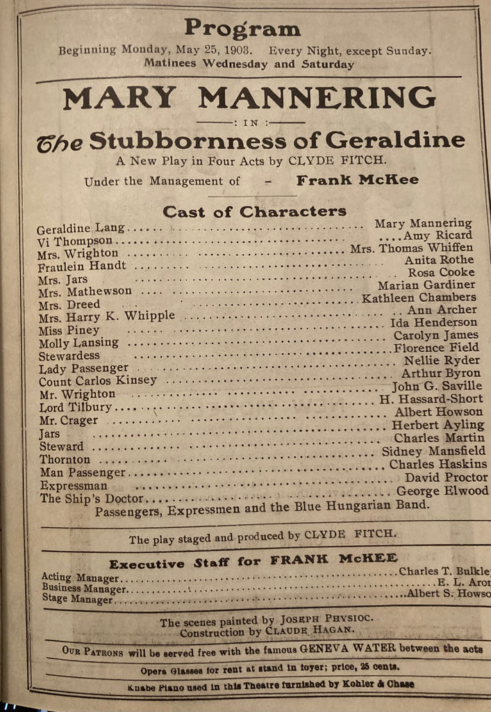 Columbia Theatre, SF. "The Stubbornness of Geraldine." May 25, 1903.