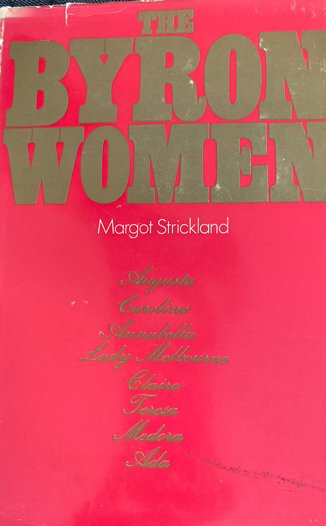 The Byron Women. Augusta, Caroline, Annabelle, Lady Melbourne, Claire, Teresa, Medora, Ada. By Margot Strickland. NY: St. Martin's Press, 1974. 8vo. 224pp., 13 illust plates, appendix, biblio, index. Tan cloth, pages somewhat discolored, else Fair+ in rubbed DJ.