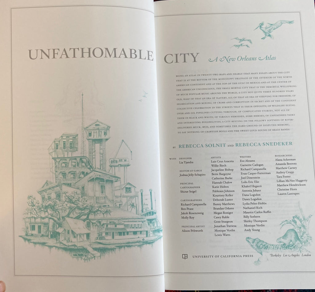 (Rebecca Solnit) [Trilogy] Infinite City. A San Francisco Atlas. Berkeley: Univ of Calif Press, 2010. Slim 4to. Color maps, viii, 151pp., prof illust, list of contibutors inc. cartographers. Color illust wraps w/ flaps, Good. With, Unfathomable City. A New Orleans Atlas. By Rebecca Solnit and Rebecca Snedeker. Berkeley: Univ of Calif Press, 2013. Slim 4to. Color maps, 167pp., prof illust, list of contibutors inc. cartographers. Color illust wraps w/ flaps, Good. With, Nonstop Metropolis. A New York City Atlas. Edited by Rebecca Solnit and Joshua Jelly-Schapiro. Oakland: Univ. of Calif. Press, 2016. Slim 4to. Color maps, 224pp., prof illust, list of contibutors inc. cartographers. Color illust wraps w/ flaps, covers lightly rubbed else Good. Outstanding... Collectible.