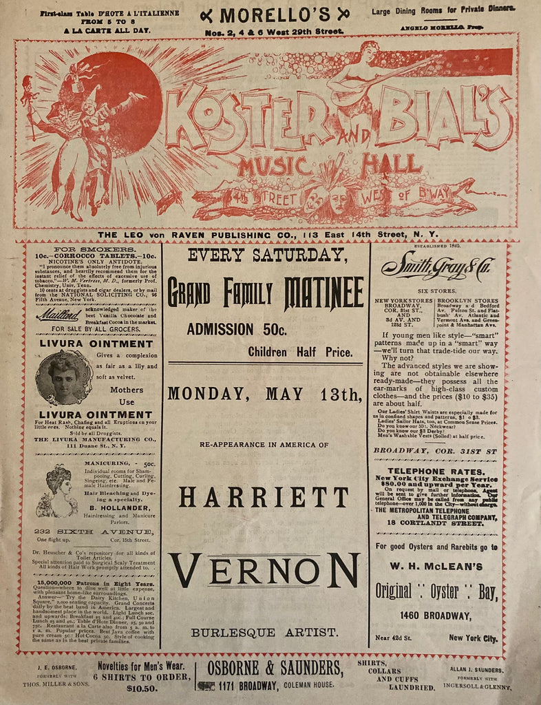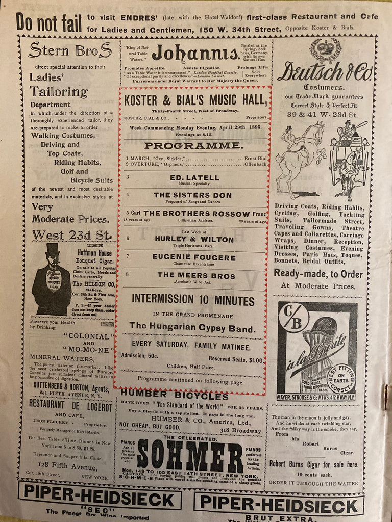 (Vaudeville) Koster & Bial's Music Hall, NY. "Variety Program." April 29th, 1895.