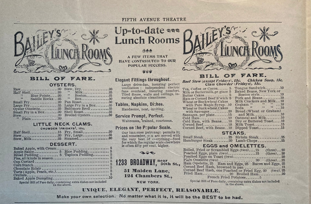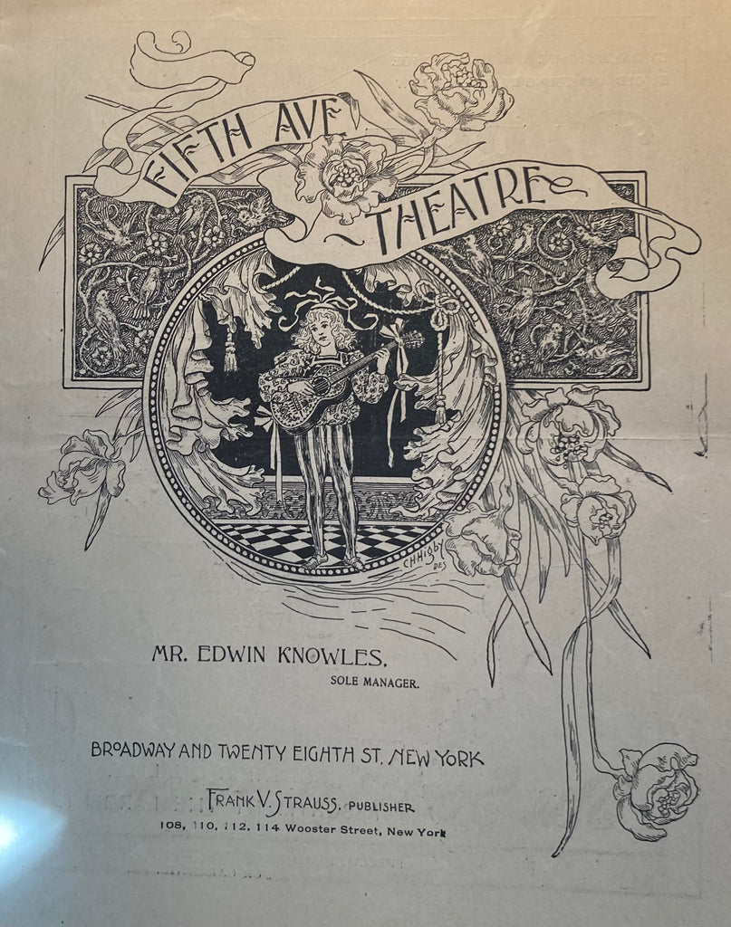 Fifth Avenue Theatre, NY. "Beau Brummel." Nov. 22, 1897. Lge 8vo. 20pp., prof illust w/ ads inc local restaurants. Color illust wraps, Good.