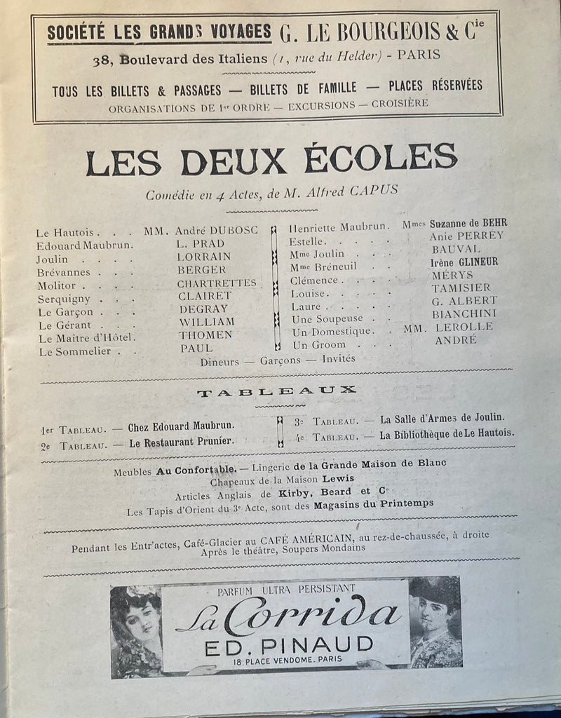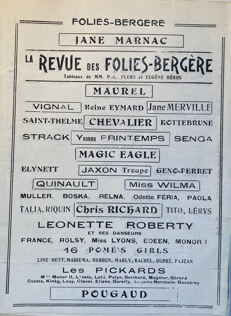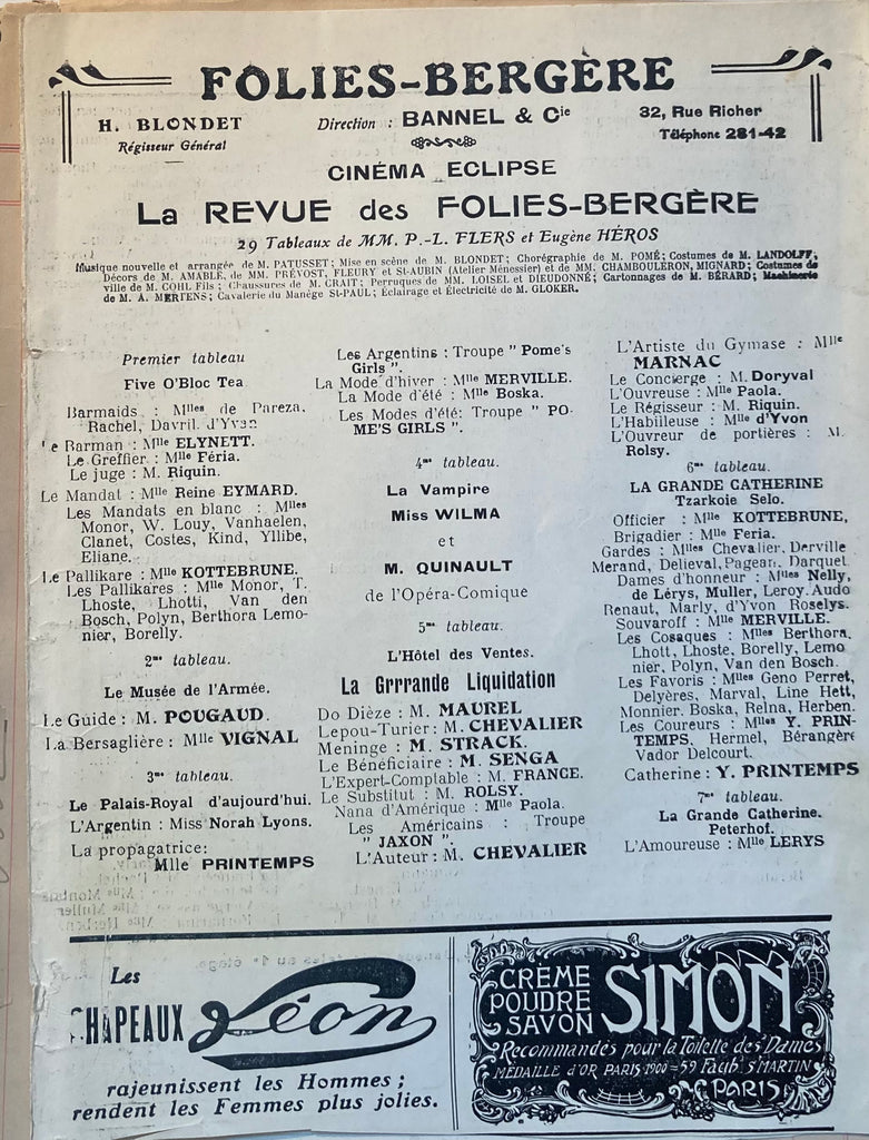(Folies-Bergere) Theatre de Vaudeville, Paris. Programme Officiel. Saison 1910.